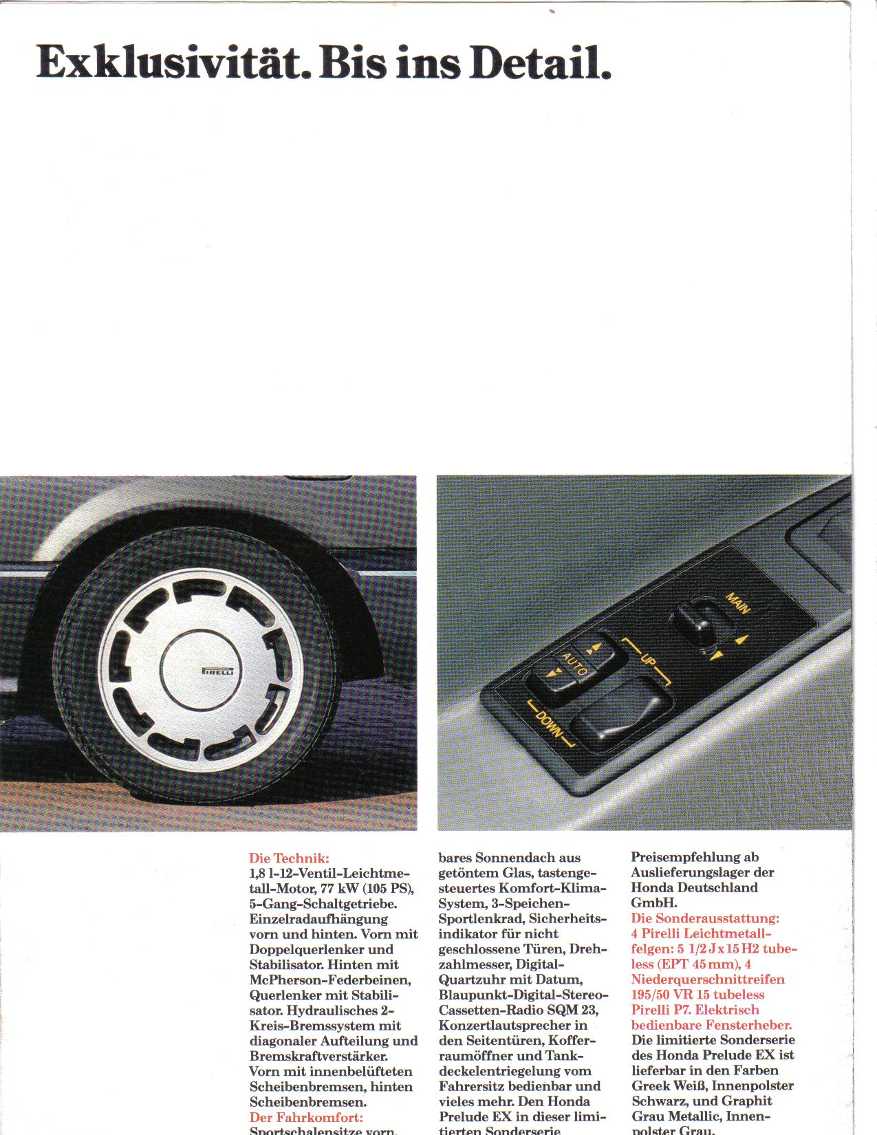 Hondas exklusives Prelude (Gen.3) Sondermodell mit Pirelli Felgen ab Werk.