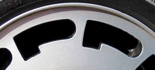 Dieses Bild zeigt einen Ausschnitt der allgemeinen Golf 2 PIRELLI Felge, die Abstände zwischen den P's betragen hier 10mm, Radkappen ohne PIRELLI Schriftzug: Teilenummer endet mit AA