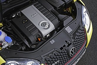 Mit dem ersten Turbodiesel begann bei Volkswagen bereits vor 25 Jahren das Zeitalter des Downsizings. Natürlich hat der Turbo-FSI des GTI technisch nichts mit einem Turbodiesel zu tun, doch das Prinzip des Downsizings haben sie gemeinsam – in beiden Fällen wird Hubraum durch Aufladung ersetzt. Rund ein Jahrzehnt nach dem ersten Turbodiesel folgte der direkteinspritzende TDI. Damit war das Prinzip des Downsizings um die Komponente der Direkteinspritzung erweitert. Das Ergebnis des Technologiemix: weniger Verbrauch und Emissionen, mehr Drehmoment und Leistung. Mit dem Golf GTI übertrug Volkswagen das Downsizing 2004 erstmals auf einen starken Benziner; bei ihm führt der Einsatz eines Turboladers mit Ladeluftkühler plus Direkteinspritzung dazu, dass Sparsamkeit und Sportlichkeit mehr denn je in Einklang stehen. Der Beweis dafür ist messbar: Der 147 kW / 200 PS und 280 Newtonmeter starke Turbo-FSI des „normalen“ GTI ermöglicht eine Höchstgeschwindigkeit von 235 km/h und 7,2 Sekunden für den Sprint auf 100 km/h. Durchschnittsverbrauch: für einen Sportwagen äußerst niedrige 8,0 Liter. Wird der GTI per DSG geschaltet, reduziert sich der Verbrauch auf 7,9 Liter.