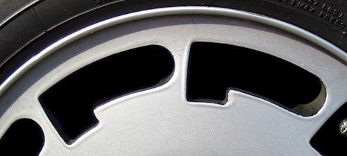 Dieses Bild zeigt einen Ausschnitt der allgemeinen Golf 2 PIRELLI Felge, die Abstände zwischen den P's betragen hier 10mm, Radkappen ohne PIRELLI Schriftzug: Teilenummer endet mit AA